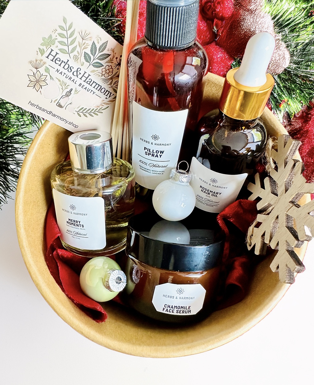 Complementing the ambiance, the nourishing Rosemary Oil Mix for thicker, healthier, and stronger hair and the Calming Chamomile & Aloe Vera Facial Cream offer a touch of self-care that restores balance and glow through the colder days.